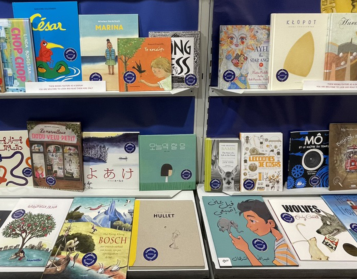 Books on display in a range of languages in the International Board on Books for Young People stand. |