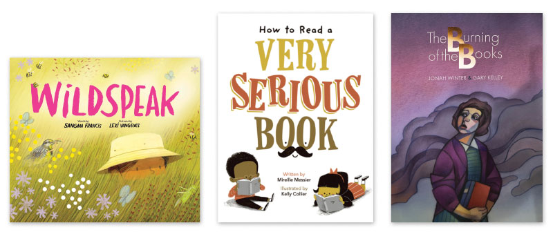 As librarians and book lovers, we’re always thinking about the power of printed words. The magic of books is centered on the experience readers have when they engage with text. Illustrations can be seen as in service to the words yet often create a whole that is far more than two discrete elements. On the opposite end of the spectrum, the importance and power of words cannot be overstated. We found three books that prove this to be true, among them, Jonah Winter’s The Burning of Books, which is astonishing but also terrifyingly timely.