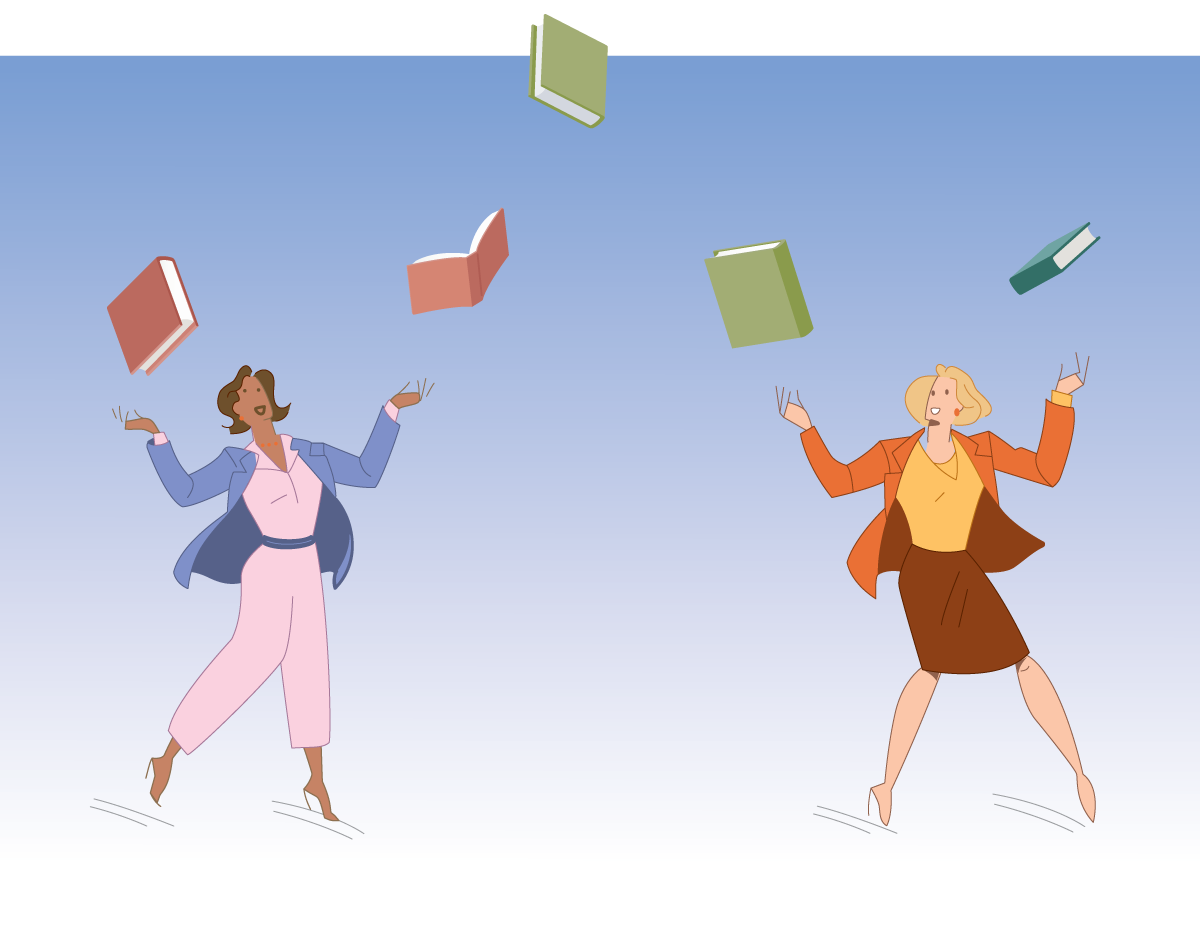 Getty Images: Dynamic Graphics (jugglers); miyuki (books)