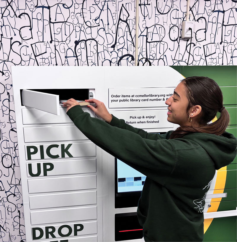 Kevin McGuire, library media specialist at Woodland Hills High School in Pittsburgh, said he and C.C. Mellor Memorial Library Director Erin Pierce first partnered to create library cards for all students. But obstacles, such as kids not living near a library branch, still existed, so a novel approach was needed. Now, the C.C. Mellor Memorial Library delivers materials to “book lockers” at the school library, and students scan their ID card to open the lockers and get their materials. The program fully launched in 2024.