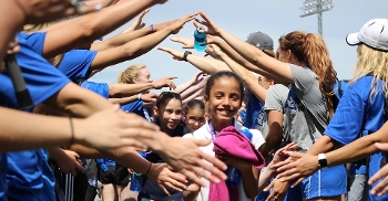 When these students visit CCSU in the spring before moving on to middle school, admissions staff explain the financial and academic support available. The kids learn about different majors and college and career paths, meet college students, athletes, and coaches, and corporate sponsor Fleet Feet gives each student a new pair of running shoes.