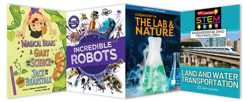 Although all these series have strong components like infographics or comprehension quizzes, two of them have something else in common. “The Science of Fairy Tales” (Capstone/Picture Window) lets readers see a familiar story from a different viewpoint and question whether events could really have happened the way they did. The narrator is the main character in the familiar story but values the scientific method. “Quick-Fix Science” (Gareth Stevens) also features a cartoon-style narrator, Snappy the Crocodile, who has a comment on just about everything. The humor of the characters and their observations invite students to see science as something to apply to everyday (or fairy tale) problems, and something to enjoy.
