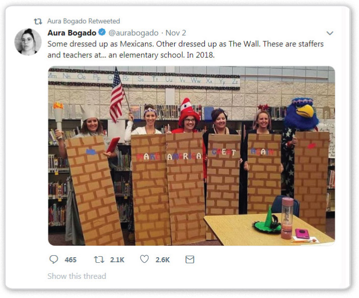 After posting an open letter on “Teen Librarian Toolbox” and not getting a response, Latinx children’s and YA authors are stepping up their efforts to connect with the Middleton (ID) School District after some middle school teachers and staff members in the district posted Halloween pictures of themselves at school dressed as the border wall and “Mexicans” with sombreros, maracas, and fake mustaches.